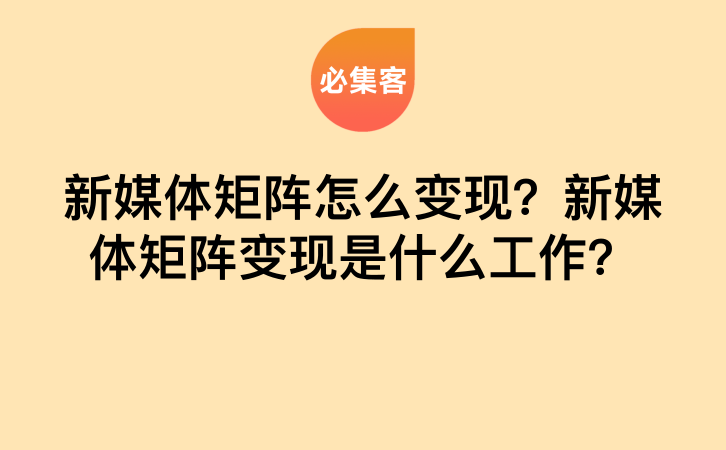新媒体矩阵怎么变现?新媒体矩阵变现是什么工作?