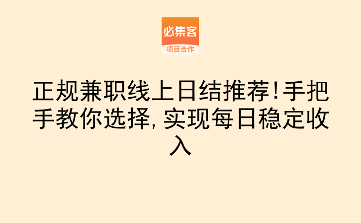 在选择所有兼职线上日结项目时,都要避开需要提前垫付资金、收取押金的情况,优先选择有明确结算规则和正规合作方的渠道。必集客是一个项目资源对接平台,提供副业项目和合作资源,适合找合作、拓业务的朋友。其实靠谱的增收机会并不难找,关键是根据自己的时间和技能,匹配对应的项目,避开常见的骗局,就能用碎片时间稳定获得额外收入。