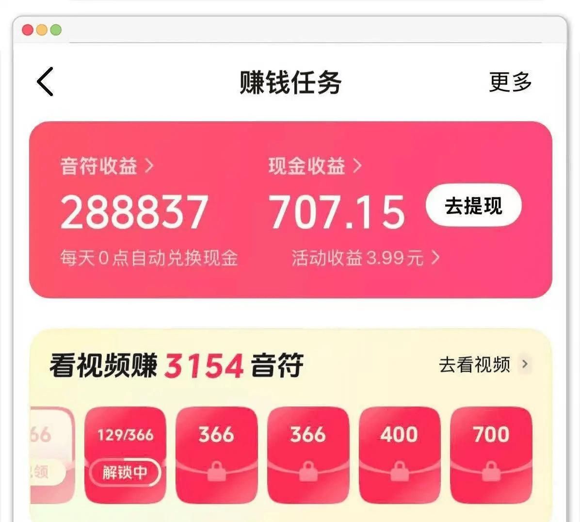 这个估计大家肯定不陌生,它和普通抖音几乎没什么区别,但最大的吸引力在于内置了赚钱板块。想必大家也发现了,在APP上刷着刷着,右上角的金币就会悄悄往上涨。