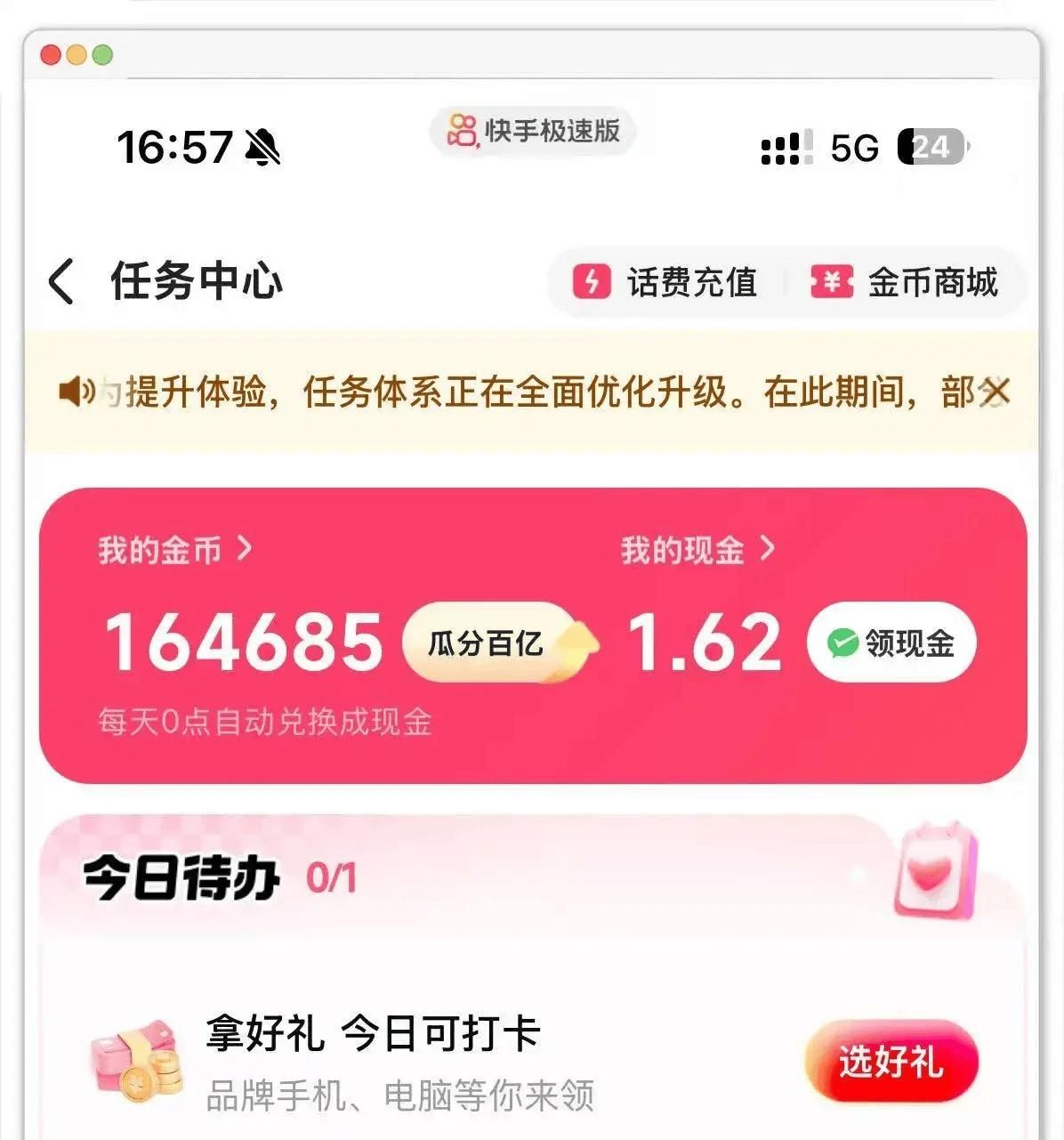 既然提到了抖音极速版,那肯定也得说说快手极速版。这俩算得上是短视频领域的“老对手”,在赚钱功能上,快手极速版自然也不甘落后。