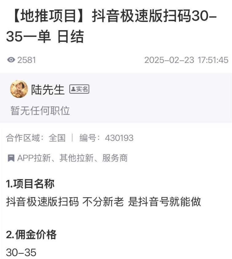 今日头条极速版APP拉新无需考虑官方版本,因为官方版本佣金极低,不值得投入时间;其地推版本佣金为20元/单。