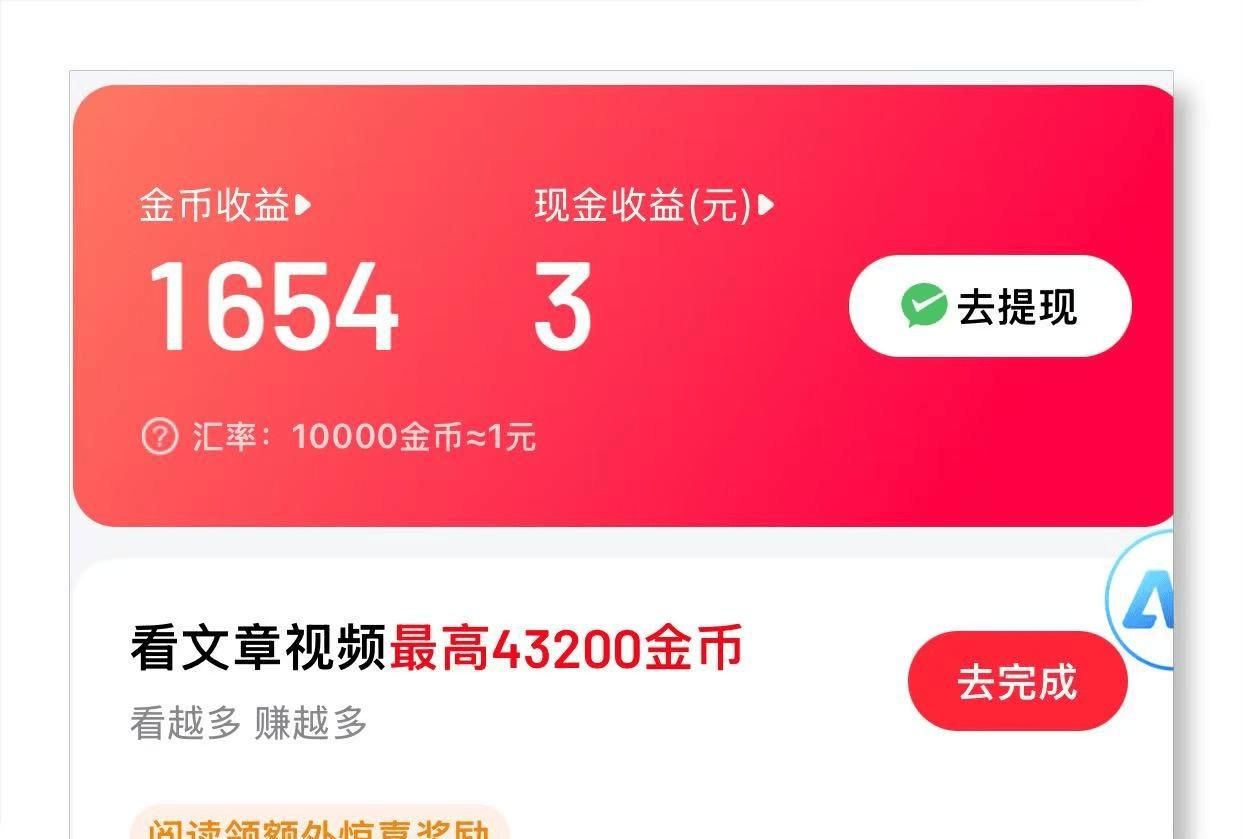 今日头条极速版领积分任务的收益其实非常有限,因其兑换比例为33000:1,所以每天能获得的收入仅为3-5元。