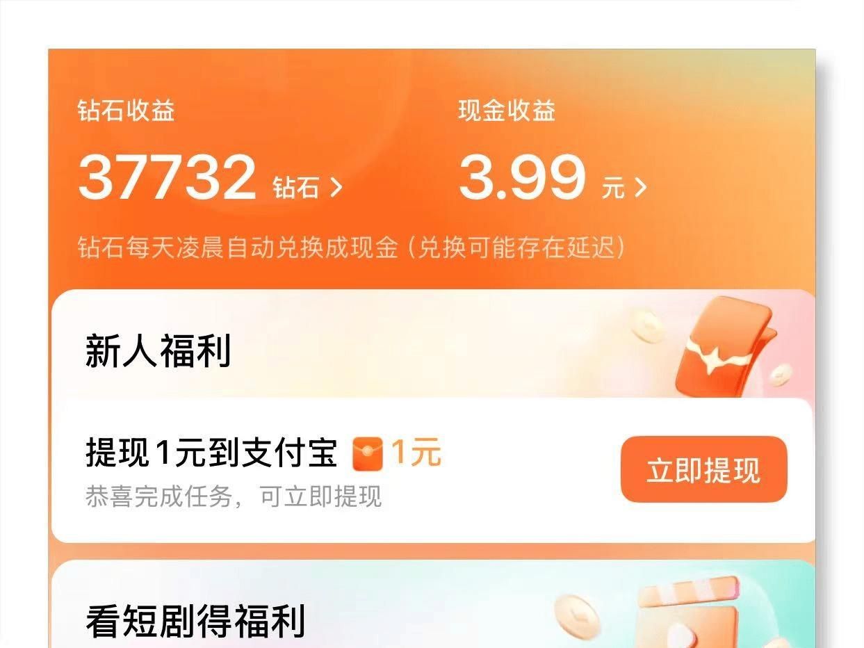 红果短剧极速版其实就是红果短剧,因其产品设计遵循极速版APP模式,因此其赚钱任务同样由钻石和APP拉新两部分组成。