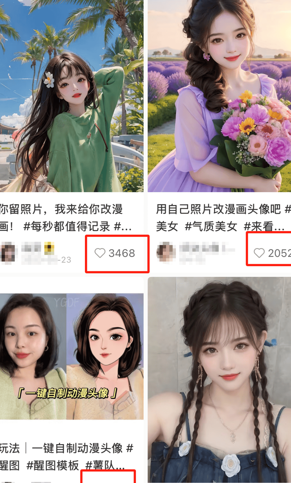 小红书漫改头像,简单说就是把真人照片转成动漫风格的头像:通过在小红书发笔记引流,吸引有需求的人,帮他们改头像赚钱。以前做这事儿得有美术功底,一笔一画慢慢画,特别费劲;现在有了AI,一键就能搞定,超简单,谁都能轻松上手。