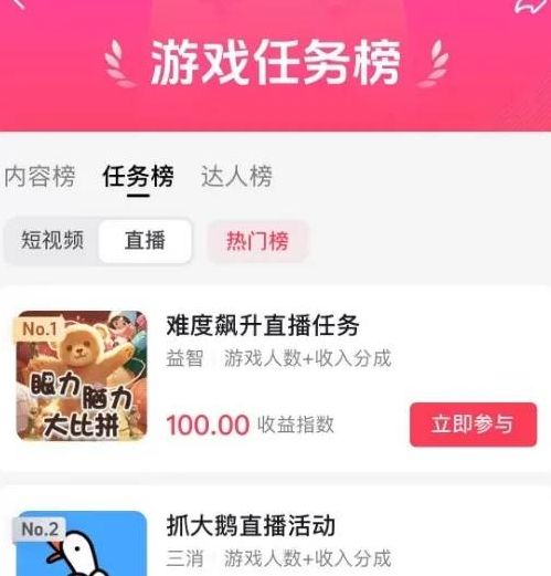 平台内的游戏试玩任务分为两种形式:一种是“短视频任务”,另一种是“直播任务”。