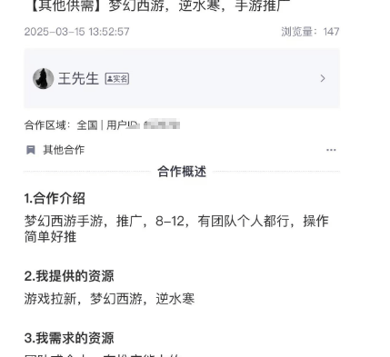 用过的朋友应该知道,像《天龙八部OL》拉新、老用户回流这类项目,都能在平台上对接。