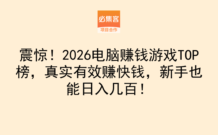 震惊!2026电脑赚钱游戏TOP榜,真实有效赚快钱,新手也能日入几百!
