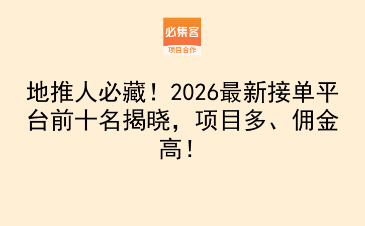 地推人必藏!2026最新接单平台前十名揭晓,项目多、佣金高!