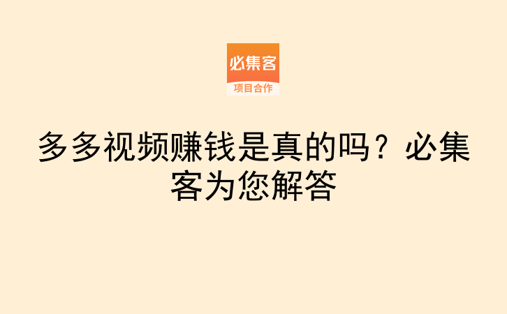 多多视频赚钱是真的吗?必集客为您解答