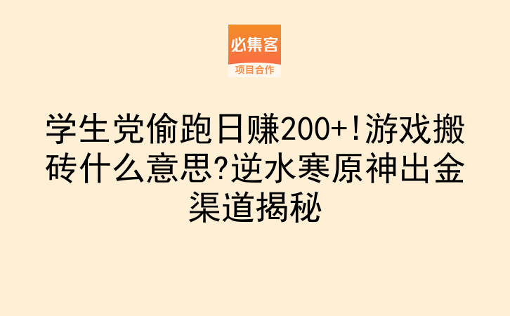 学生党偷跑日赚200+!游戏搬砖什么意思?逆水寒原神出金渠道揭秘
