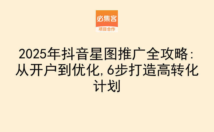2025年抖音星图推广全攻略:从开户到优化,6步打造高转化计划