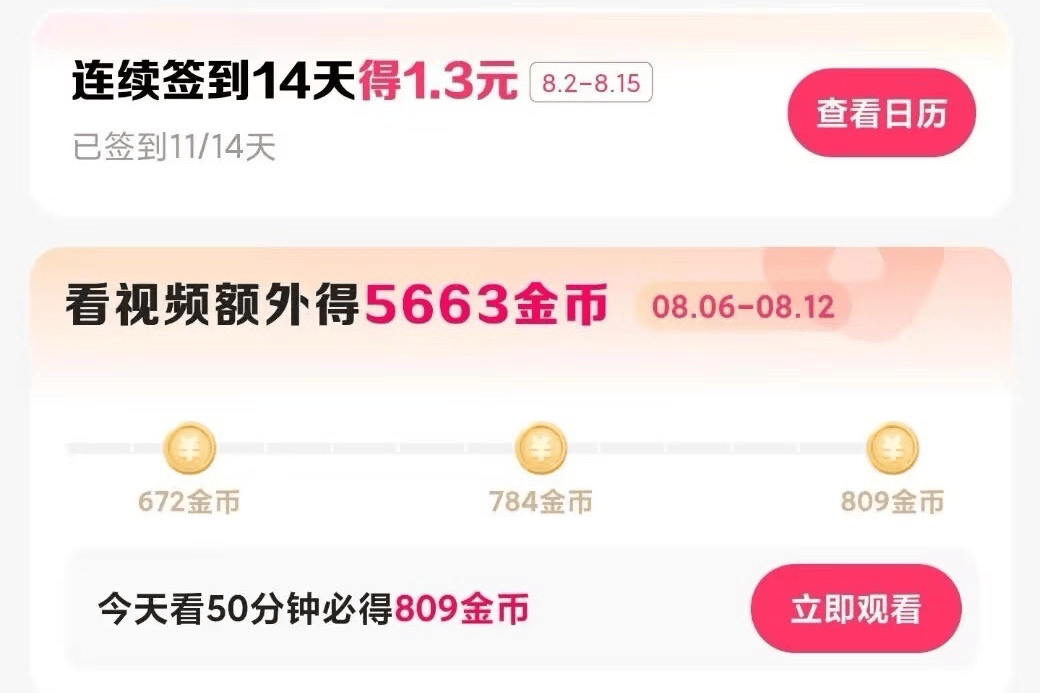 - 生态建设需要: 平台通过金币鼓励用户参与看视频、签到、邀请好友等活动,丰富平台内容池和用户基础,形成平台发展的良性循环。