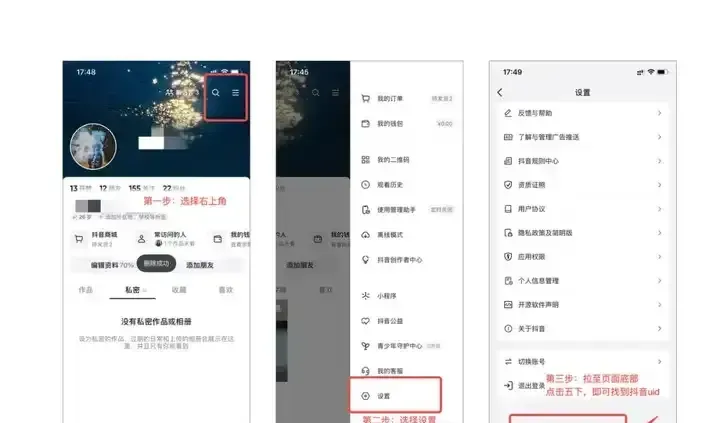 抖音UID的获取方法十分简单,可参考下方图文教程,直接复制填写即可。