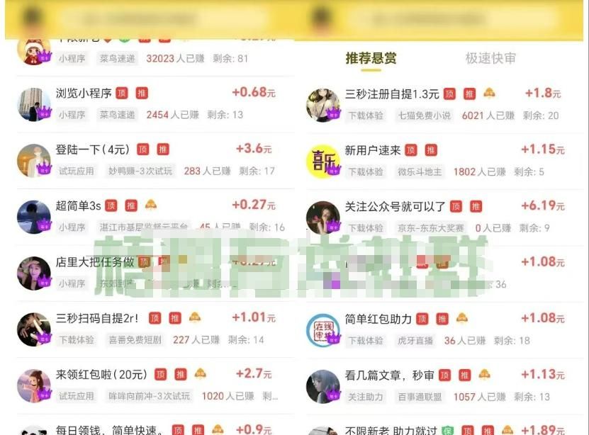 说实话,这类项目在互联网老手眼里根本看不上,但对新手小白来讲,这类项目是非常踏实且见钱非常快的项目,当时做,当时就可以拿到钱,多劳多得,真正的只要肯去动手,一天100-300完全没有问题,任务种类可多了,像给 APP 拉新用户、填调查问卷、标注数据、注册个账号啥的,操作很简单,一单能挣5-10块。