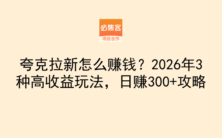 夸克拉新怎么赚钱?2026年3种高收益玩法,日赚300+攻略