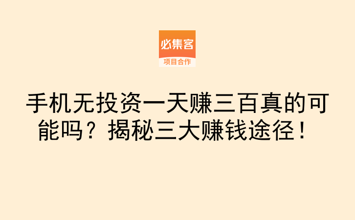 手机无投资一天赚三百真的可能吗?揭秘三大赚钱途径!