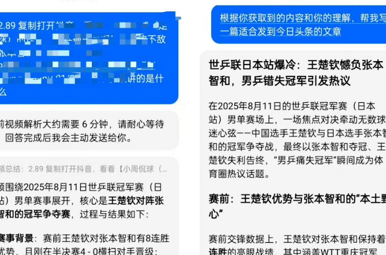 接下来用AI结合热点内容创作,打开豆包,将刚才复制的链接发给它,让它根据链接里的内容生成一篇原创文章。