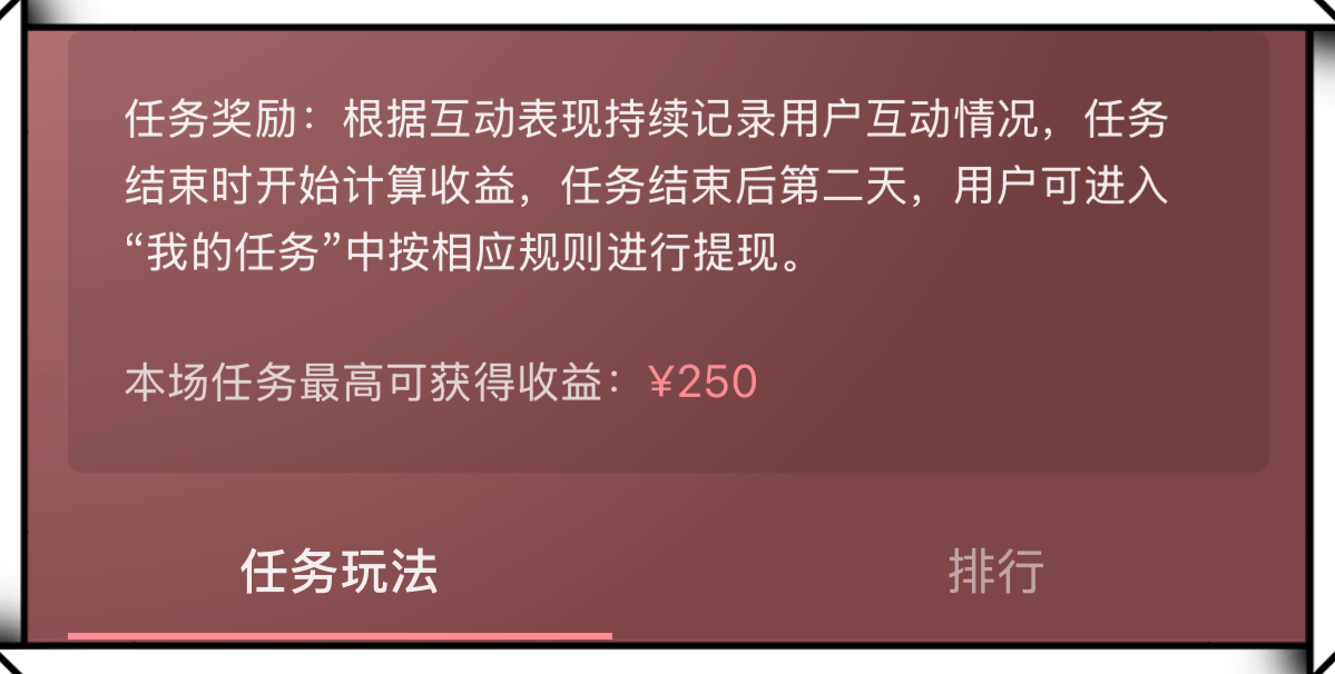 比如下图这场任务就标注:本场任务最高可获得收益¥250。