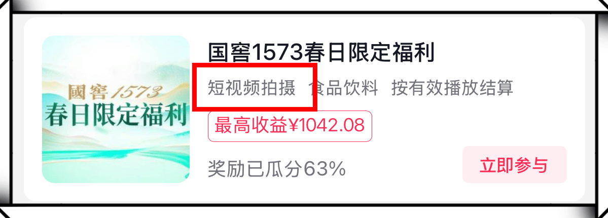 确认要求后,我们点击“立即参与”,即可拍摄上传视频,品牌方会根据我们的视频表现,邀请所有合格创作者瓜分现金奖励。
