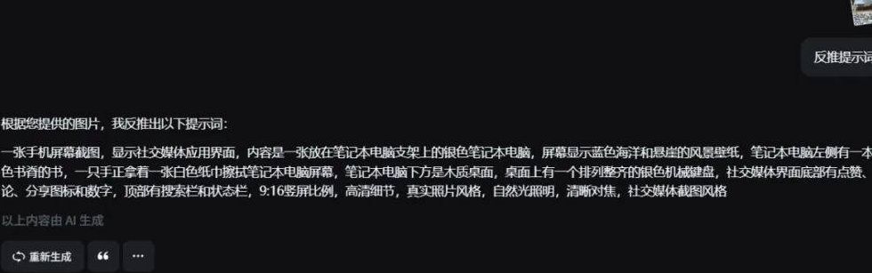 我的第一步,就是先搞明白别人的AI指令是怎么写的。我在电脑上打开即梦网站,先把刷到的爆款视频截了图,然后发现网站里有个叫Agent的模式,抱着好奇试了一下,没想到它居然能直接反推出生成这张图对应的关键词,一下子就让我找到了突破口。