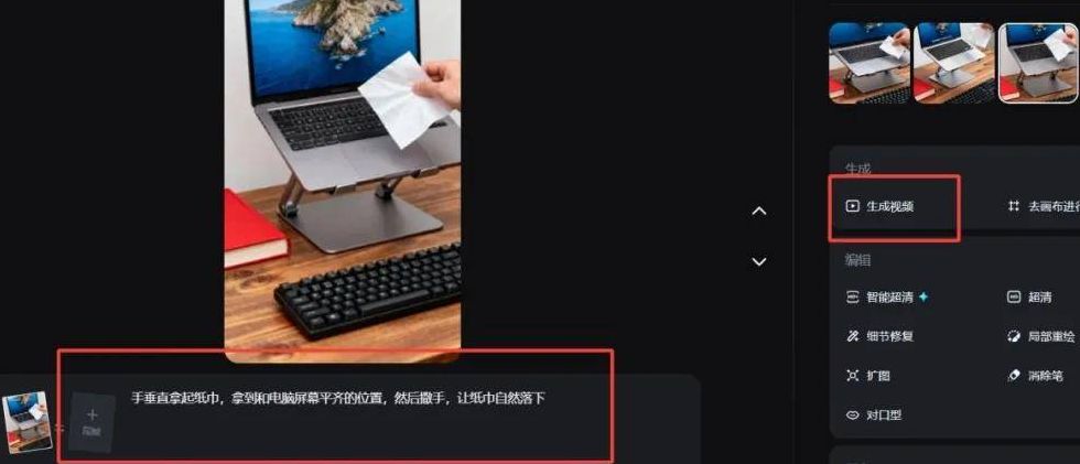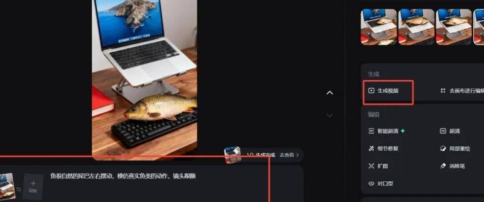 两张静态图做好之后,下一步就是让它们动起来。我发现即梦本身就支持图片生成视频,于是直接把两张图都分别转成了动态短视频。