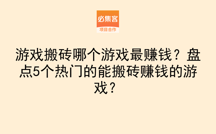 游戏搬砖哪个游戏最赚钱?盘点5个热门的能搬砖赚钱的游戏?