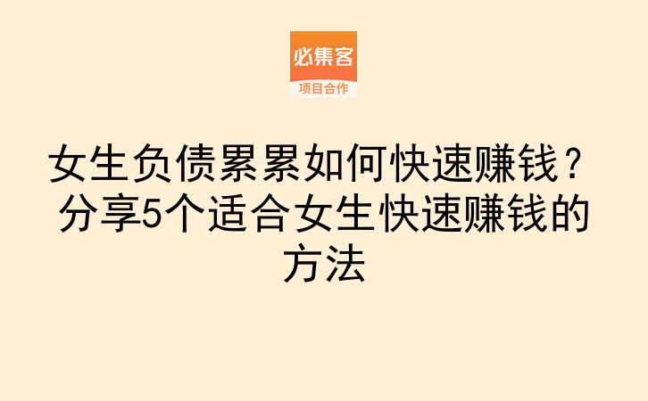 女生负债累累如何快速赚钱?分享5个适合女生快速赚钱的方法