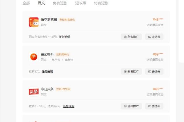 你可以通过正规的小说推文授权渠道,挑选当下热门的小说申请专属推广别名,再把小说的精彩片段制作成推文视频,通过视频文案、评论区置顶引导或者合集挂载等方式引流,吸引读者到对应平台搜索别名阅读,或者直接点击视频锚点跳转,只要产生有效阅读就能赚取推广佣金。