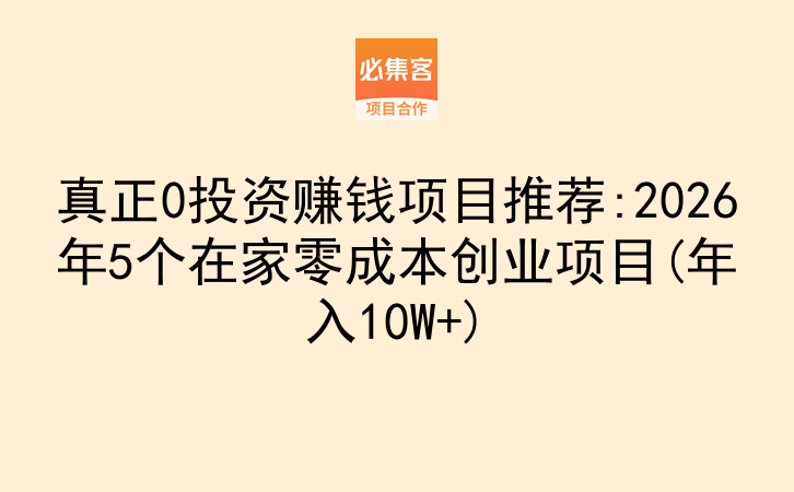 真正0投资赚钱项目推荐:2026年5个在家零成本创业项目(年入10W+)