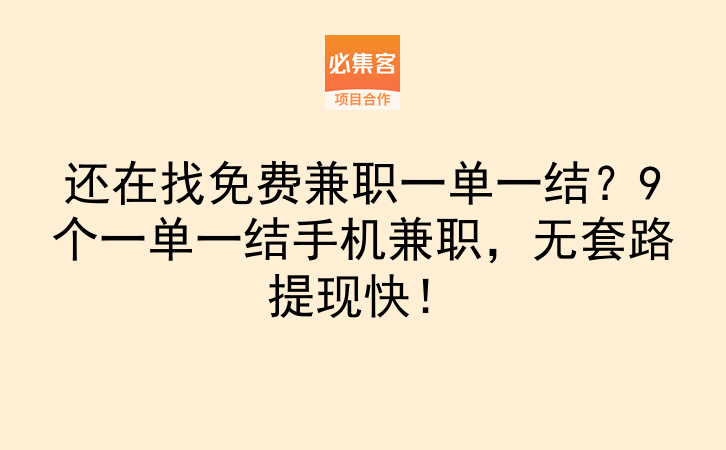 还在找免费兼职一单一结?9个一单一结手机兼职,无套路提现快!