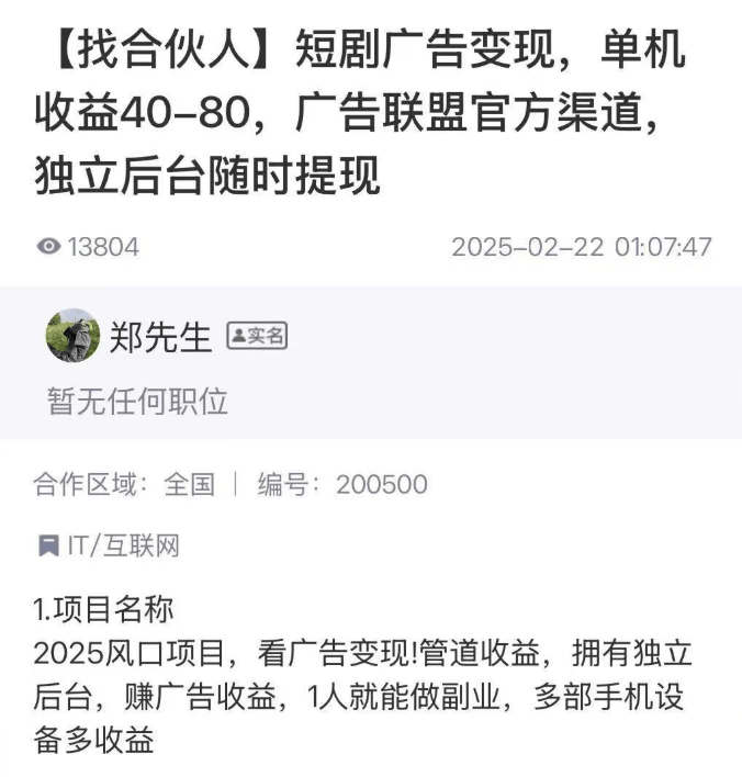 它的本质类似广告联盟,服务商会协助我们搭建好广告观看平台,只要有人在这个平台上看广告,我们就能拿到对应的收益,观看的人越多,收益自然越丰厚。