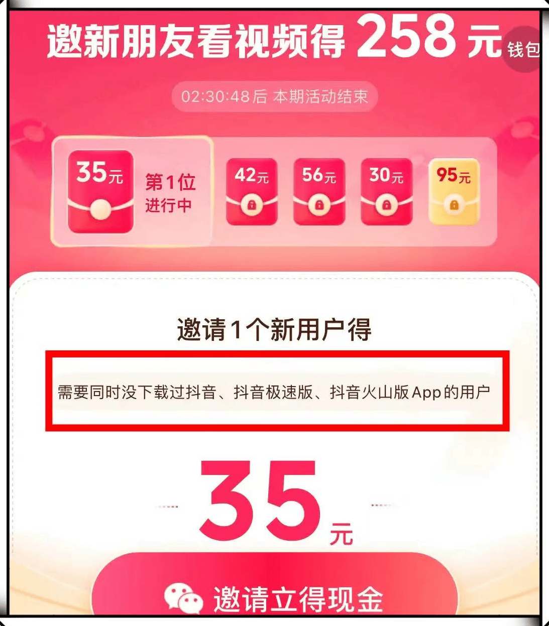 只要是没有下载过抖音极速版APP的新用户,或是30天内未使用过APP的回流老用户,都算作有效邀请。