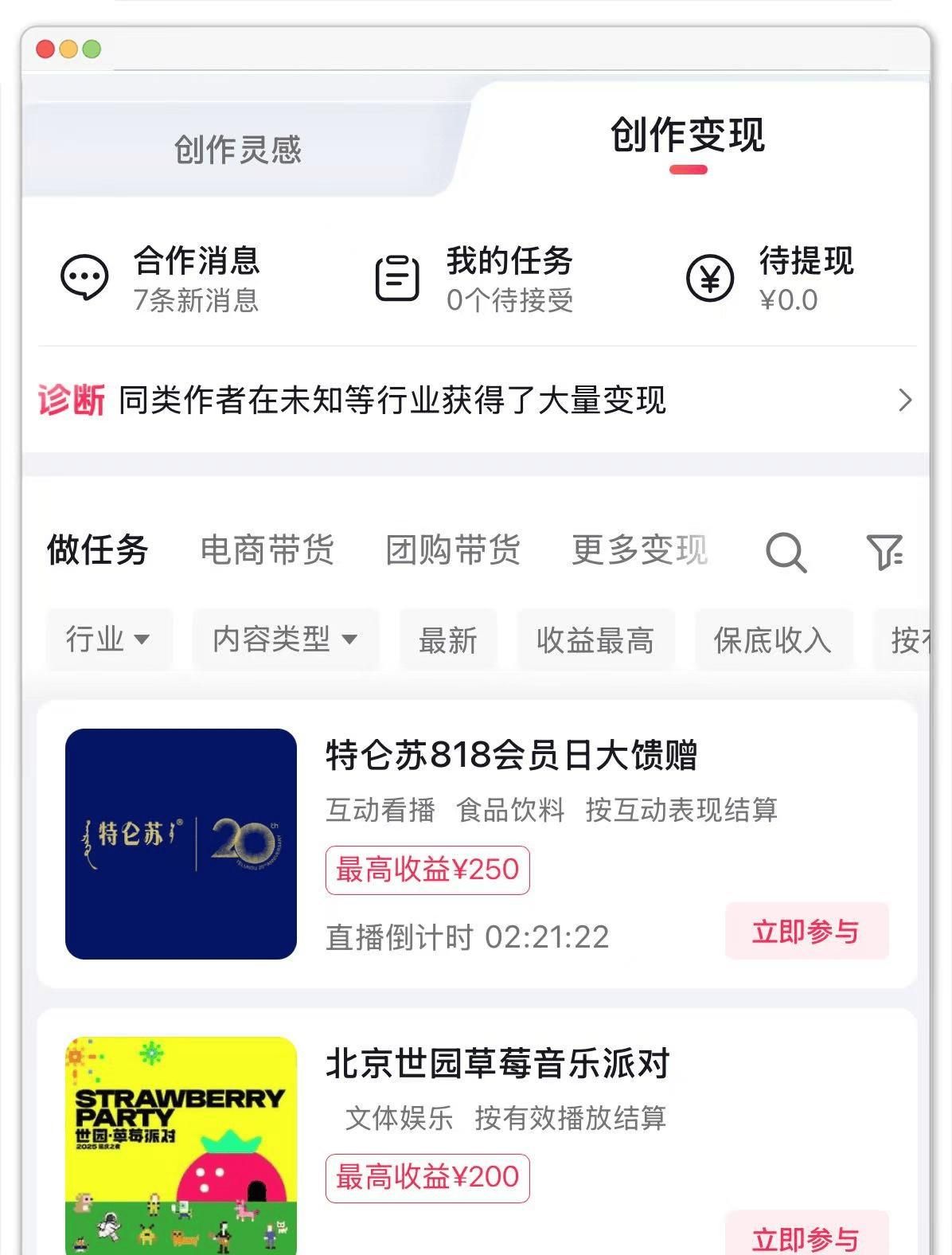 找到“创作变现”中的“互动看播”任务。