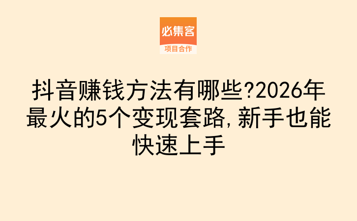 抖音赚钱方法有哪些?2026年最火的5个变现套路,新手也能快速上手