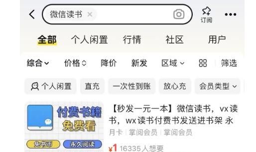 先了解它的变现方式:打开闲鱼,搜索“微信读书”即可。