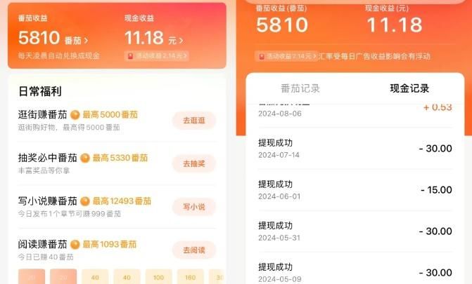 与微信读书相比,番茄小说的阅读赚钱方式更为直接。