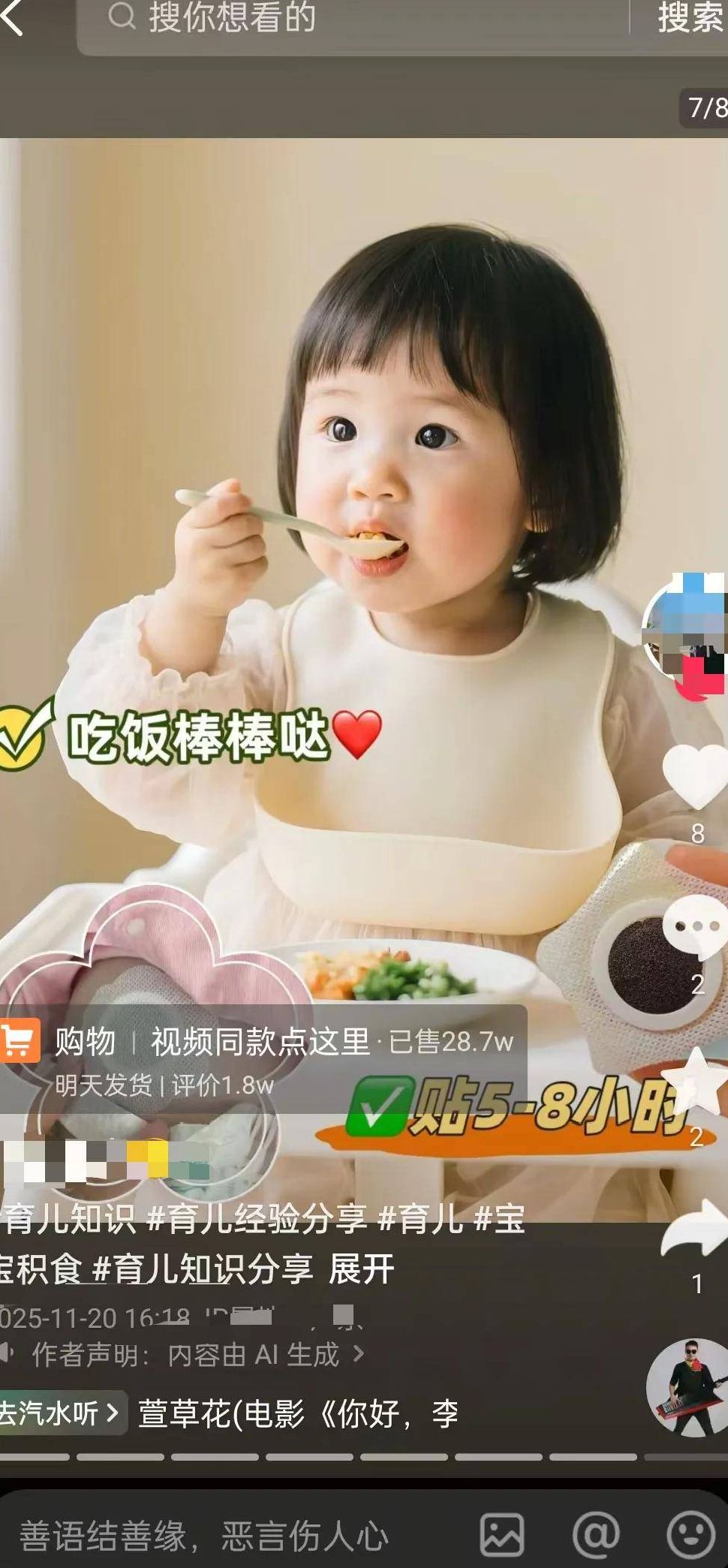 重点聚焦这个转化率——这才是账号的核心竞争力所在。该账号粉丝量仅1.1万,在抖音生态中属于典型的尾部账号,但它已持续发布1587条作品,累计销量突破1万单。这背后的逻辑是什么?正是凭借极致的内容精准度和长尾效应实现稳定盈利。账号作者完全摒弃了杂乱的泛内容,始终聚焦“专业育儿知识”这一垂直赛道,搭配的也都是宝宝刚需周边产品。这种“小而美”的精细化运营模型,相比大起大落的流量网红账号,具备更强的商业稳定性和可持续性。