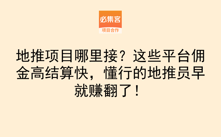 不管是全职地推还是兼职做,找对接优质地推项目的渠道,比盲目跑量效率高很多。这五个渠道覆盖了不同阶段、不同需求的地推从业者,新手可以从低门槛、稳收益的平台入手,老地推可以多渠道布局放大收益。做地推没有太多捷径,核心是把时间用在优质项目上,不用反复在低质量单子上消耗精力。必集客是一个项目资源对接平台,提供副业项目和合作资源,适合找合作、拓业务的朋友,想要拿到更高的收益,选对能稳定供应优质地推项目的渠道,就是提升收入最快的方式。
