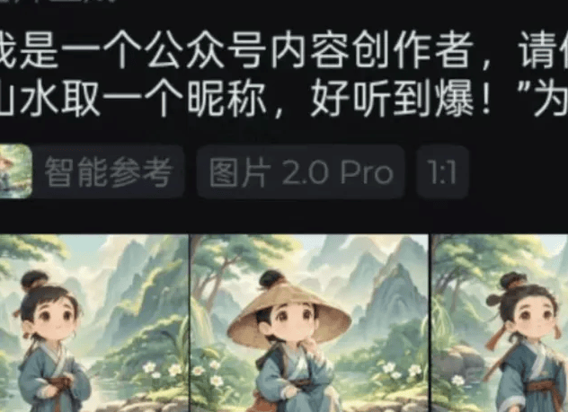 比如你在别人的文章里看到一张很喜欢的图,不用到处找素材,只需要告诉“即梦”:“我想要这种感觉的,帮我生成一张古风山水背景图,再带点云雾缭绕的效果。”它马上就会生成4张不同风格的图片让我们挑。选一张最喜欢的,简单裁剪下,加上自己的水印后,一张完美的配图就轻松搞定啦!