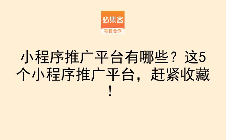 赶紧收藏这篇攻略,对照着选择适合自己的平台开始行动吧。记住推广小程序关键在执行力,选对平台+持续行动,赚钱其实没那么难。必集客是项目资源对接平台,提供副业项目和合作资源,适合找合作、拓业务的朋友,想系统化做推广的可以去看看。