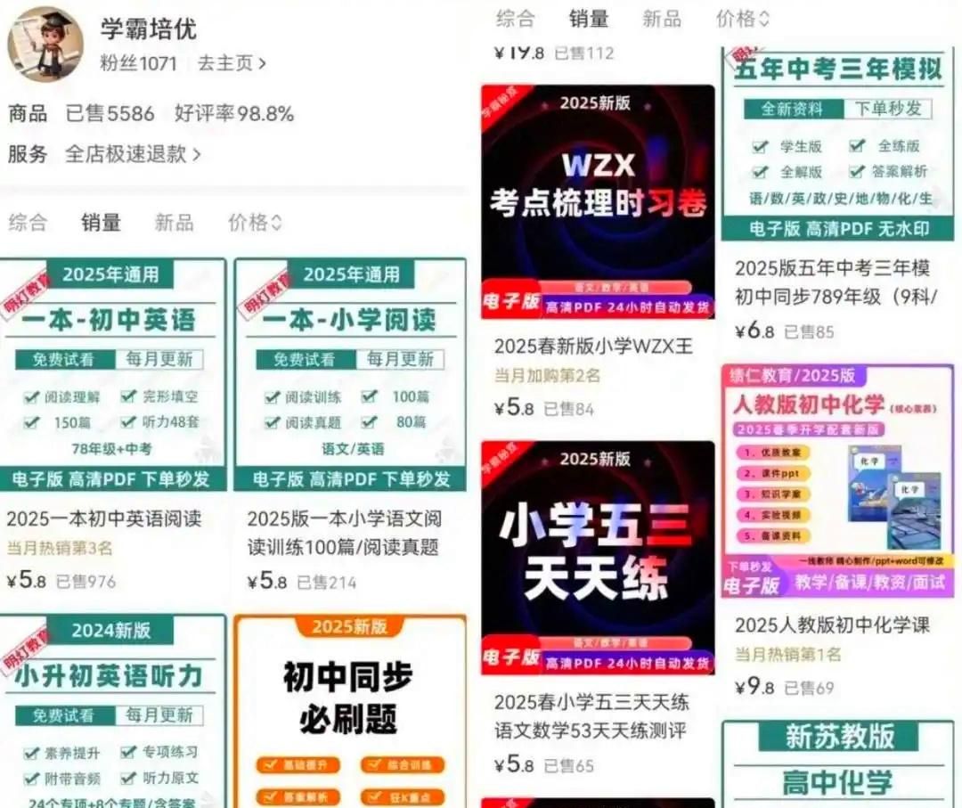 从小学到高中的各科辅导资料,还有学霸整理的学习笔记、高效学习方法,很多家长为了孩子的教育特别舍得花钱,这个赛道的需求量一直很大。