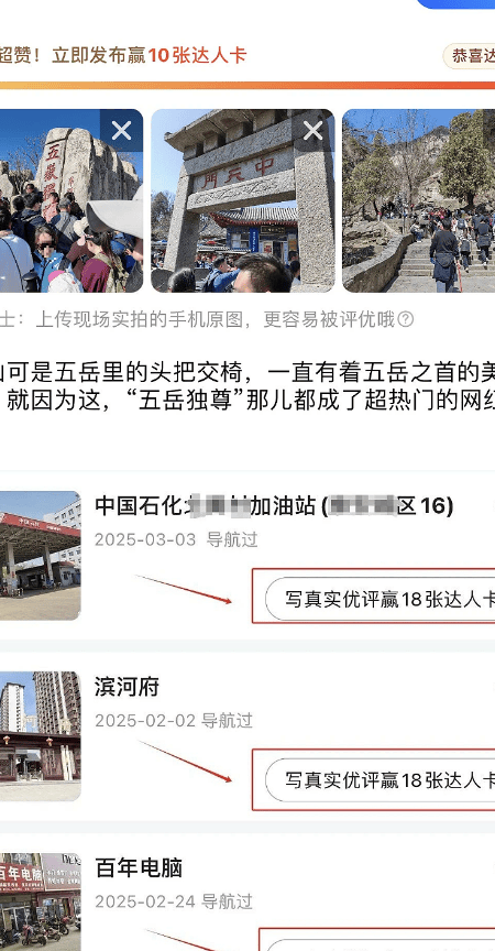高德为鼓励用户多写点评,推出了"达人卡"奖励机制。
