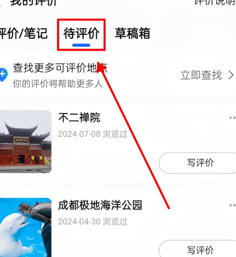 进入后有个【待评价】区域,里面都是待你点评的商家。