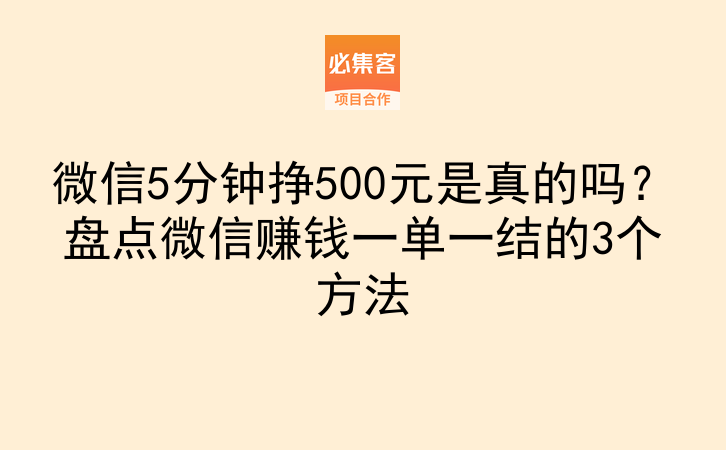 微信5分钟挣500元是真的吗?盘点微信赚钱一单一结的3个方法