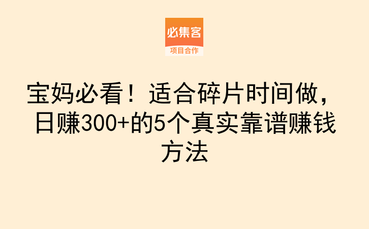 宝妈必看!适合碎片时间做,日赚300+的5个真实靠谱赚钱方法