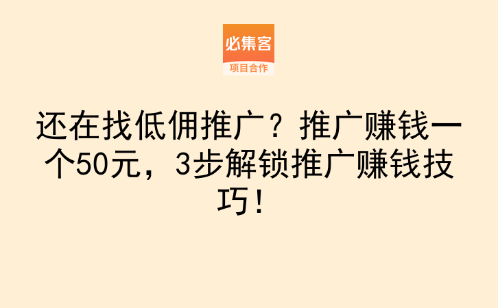 还在找低佣推广?推广赚钱一个50元,3步解锁推广赚钱技巧!