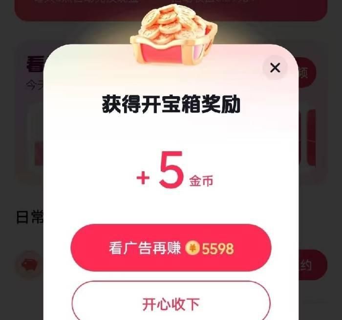 例如同一个广告刷到两三次时,你可以点进去查看,甚至安装试用一下——无需付费,系统就会判定你为高质量用户,之后宝箱发放的金币会明显增加。