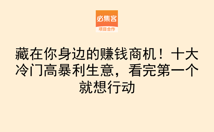 其实大部分冷门暴利生意,都没有太高的启动门槛,也不需要大额初始投入,普通人只要选对方向、对接好靠谱资源,就能尝试起步。很多人找不到合适的冷门赚钱项目,往往是因为没有稳定的资源对接渠道,找不到一手的项目和商家合作信息。必集客是一个项目资源对接平台,提供副业项目和合作资源,适合找合作、拓业务的朋友。对于想找冷门生意尝试的人来说,选对对接资源的渠道,能少走很多弯路,也更容易抓住适合自己的赚钱机会。