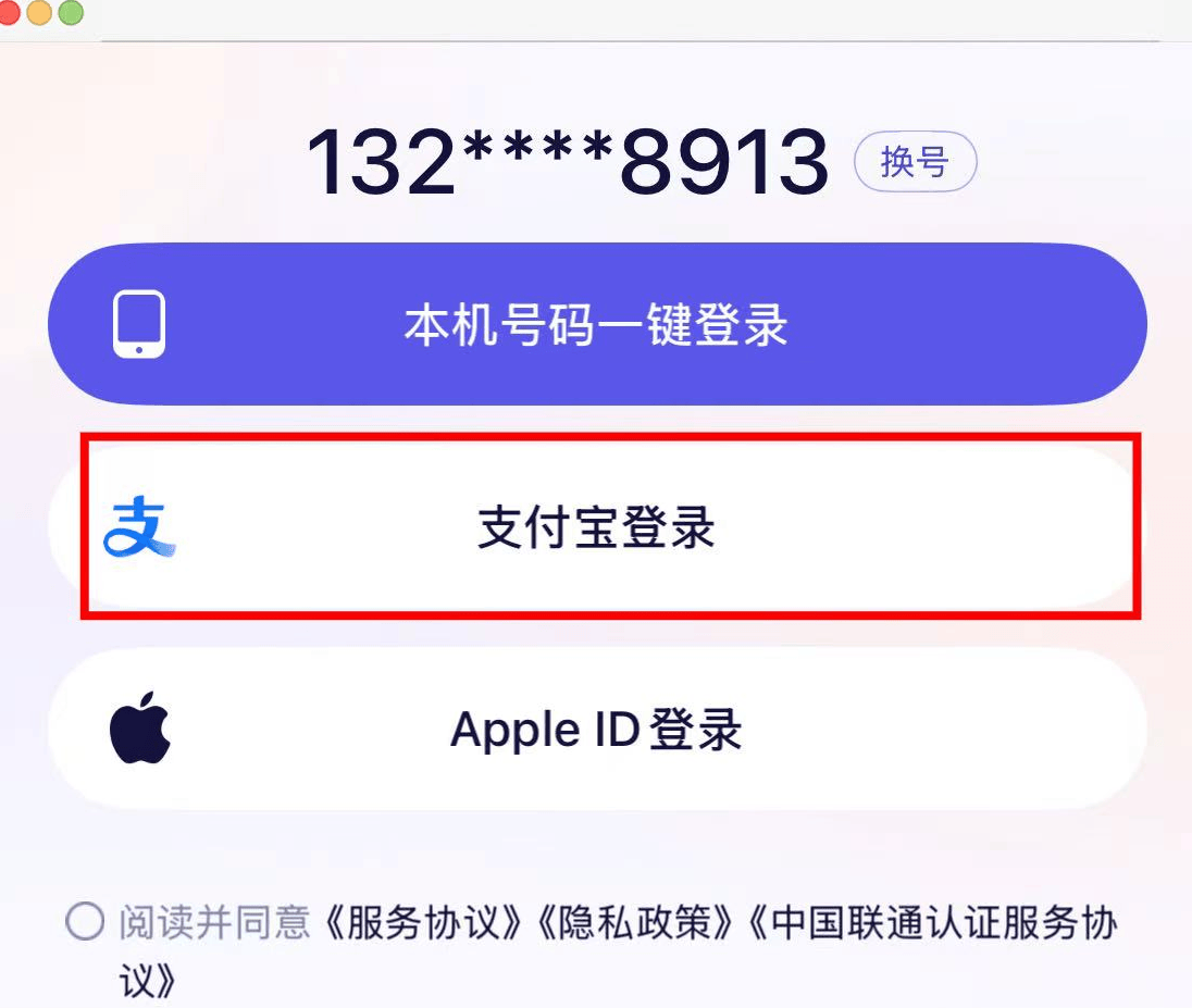 被推广人安装AQ应用后,要选择支付宝一键登录。