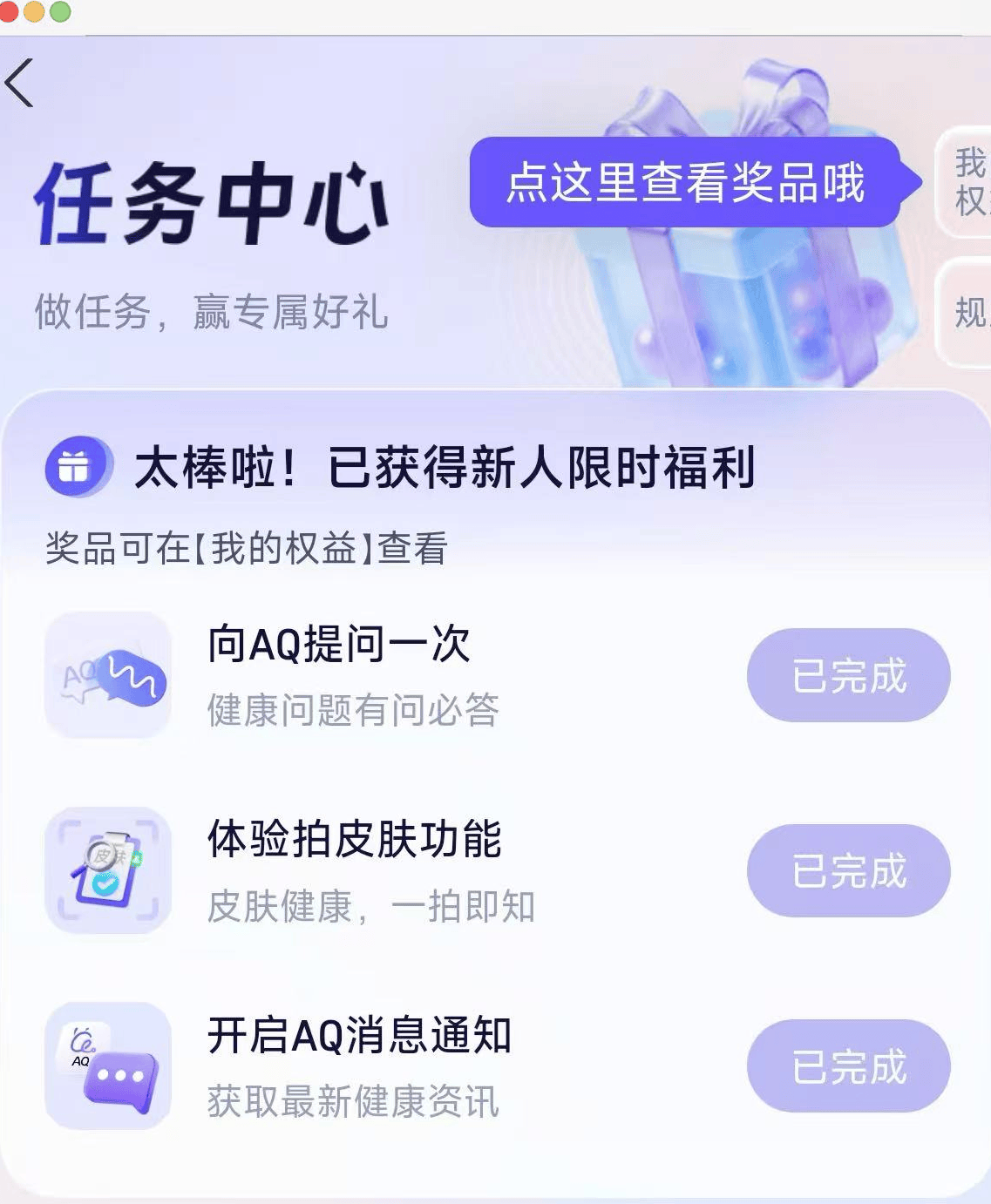 点击右上角红包按钮,会显示三个任务,比如“提问一个健康问题”“拍皮肤检测”“打开通知”“向健康智体提问”等。选择一个去完成即可。做完这些步骤,就能成功拿到佣金。官方佣金秒到账,服务商佣金则按约定结算,不过服务商提供的后台能实时查看推广是否成功。这就是支付宝AQ推广码获取及拉新推广的详细流程。还是那句话:愿您看到这篇文章时,还在12月份!